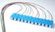 The most common is know as the fusion splice on pigtail, and the 12 fiber or 6 fiber multi color pigtail array are easy to install and identify the fiber. Providing a premium quality fiber optic connection. We also offer Individual single pigtails in various colors, Discounted 6 packs, or 12 Packs. Also are 12 fiber or 6 fiber jacketed pigtails .
