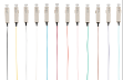 12 Packs of multi-color fiber optic pigtails. LC, ST, FC, SC, SC/APC, FC/APC, LC/APC Connector types available. 3 Meter 900 pigtails. See Connector types Above for details.