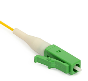 The SC/APC Fiber optic pigtails are available in individual packs, 6 packs or 12 packs and use a Green SC/APC connector. Jacket Diameters vary including 900um, .9mm, 1.6mm, 1.8mm, 2.0mm, 3mm. The SC-APC Single mode fiber optic pigtail version, is typically a yellow jacket, theses can also be made for special applications that use a SC/APC Multimode fiber optic pigtails is typically a orange or aqua jacket and the SC/APC Multimode OM3 10 Gig Laser Optimized version is typically Aqua in Color.
